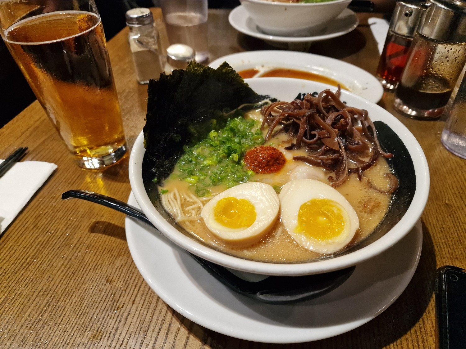 We waited in line for 40 minutes for some really, really good ramen at Danbo. Walked uphill to Bites of Bangkok to sit at the bar for drinks and laughs with the bartender. Sloshed home.
